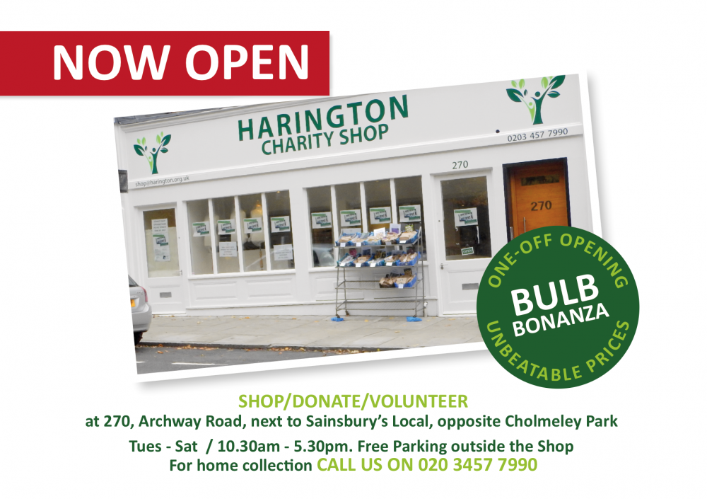 The new Harington Shop, at 270 Archway Road, opposite the entrance to Cholmeley Park, opened on 13th November 2015 and has been welcomed by the local community. It is now open Monday 1pm- 5.30 pm, Tuesday to Saturday 10:30 am to 5:30 pm.